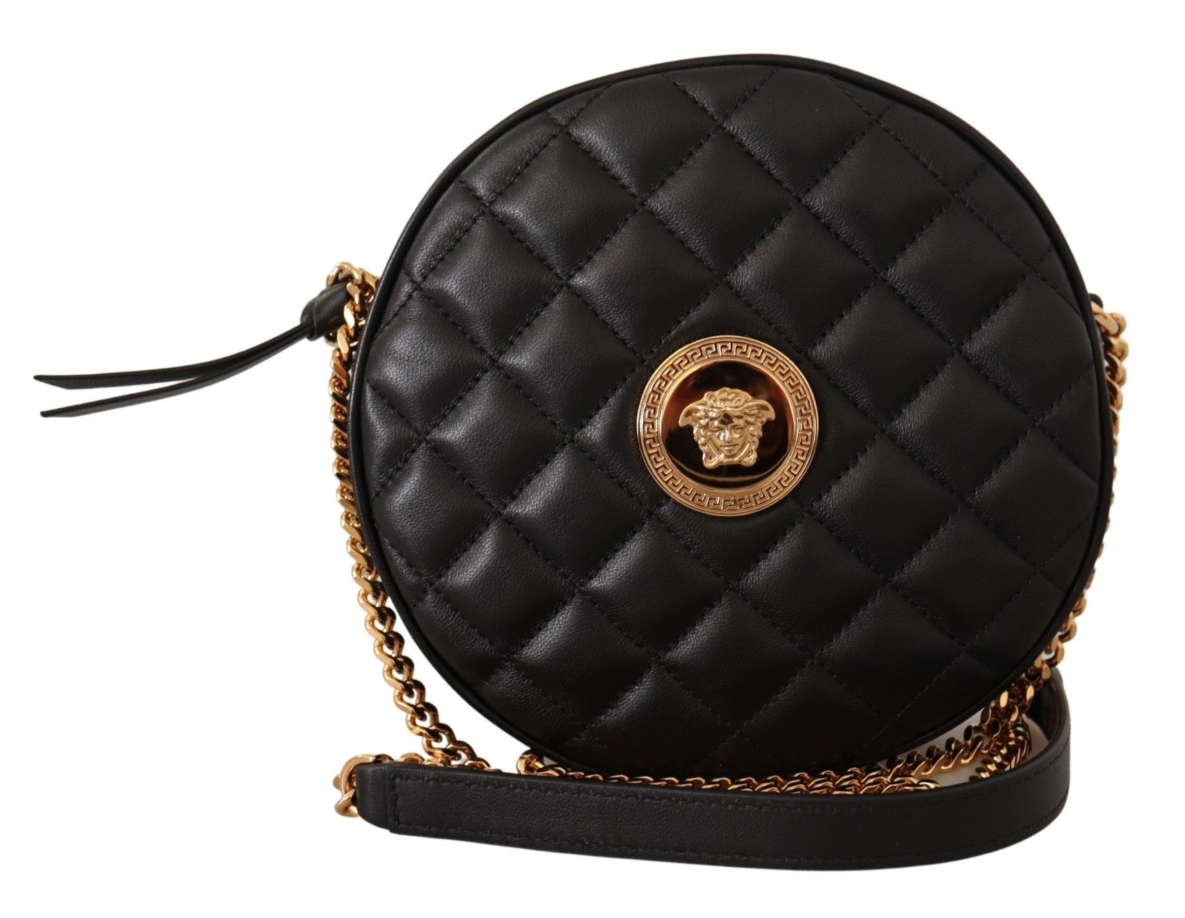 Versace Black Nappa Leather Medusa Round Shoulder Bag